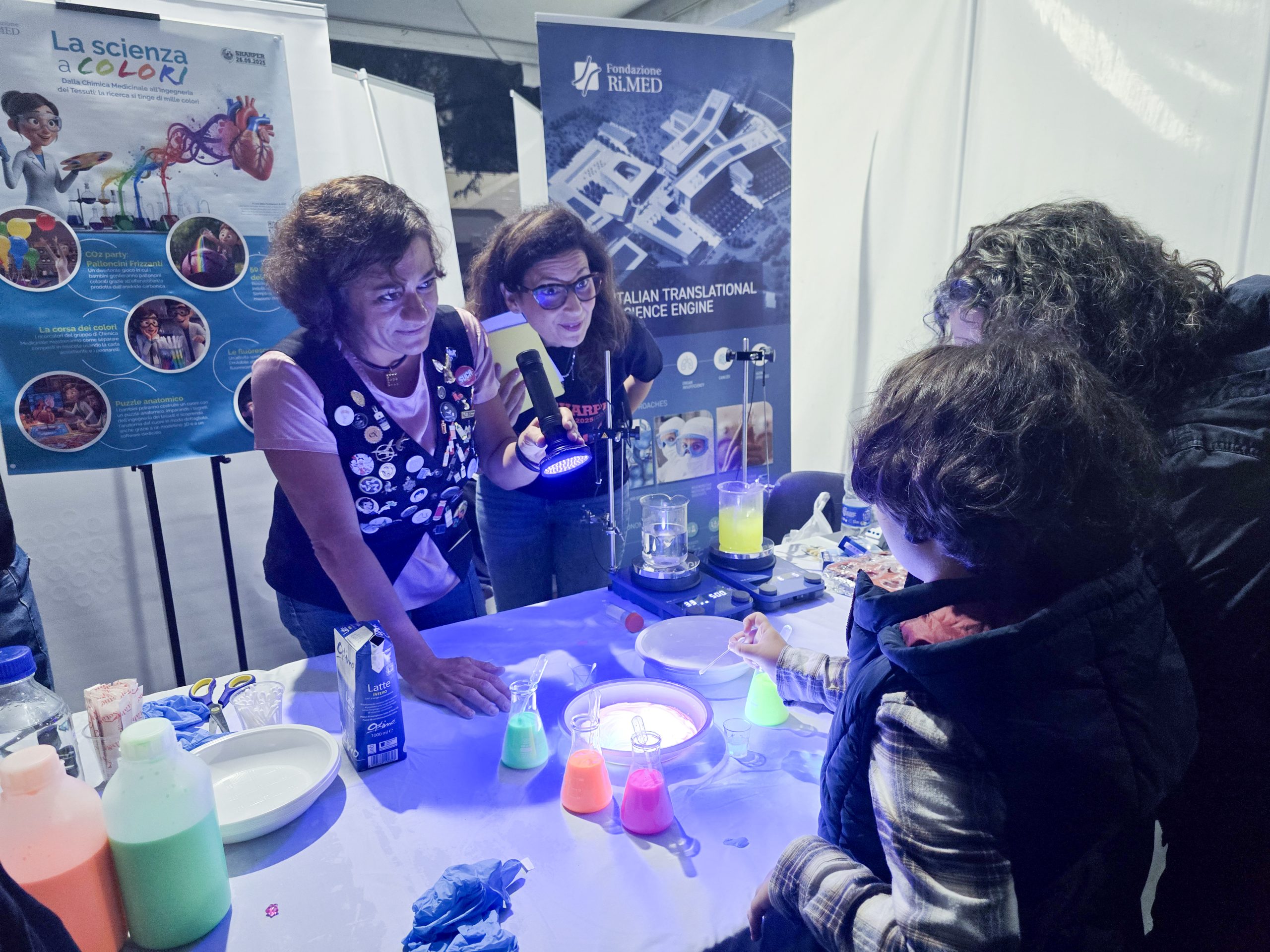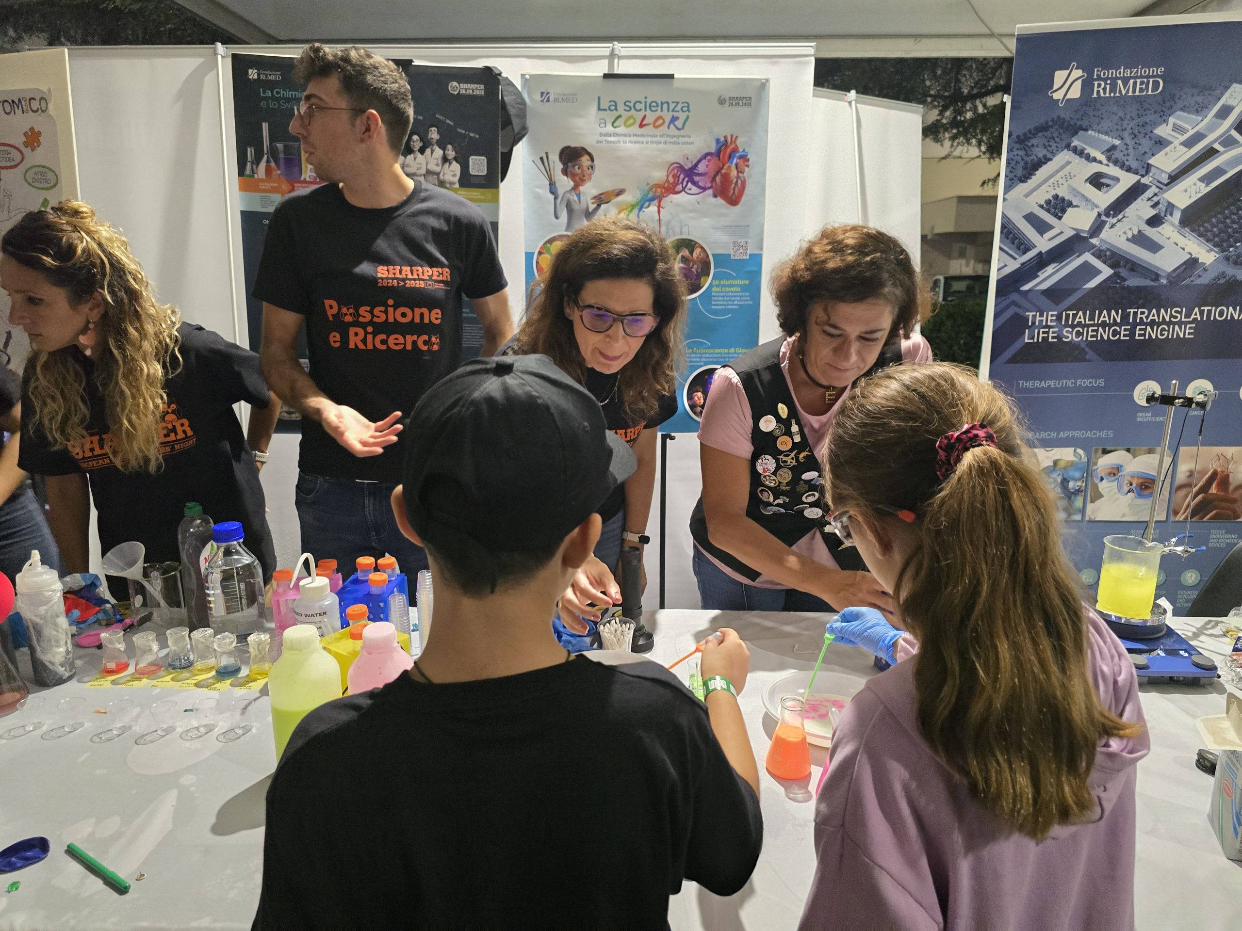 La Fondazione Ri.MED ha partecipato per l’ottava edizione consecutiva con “La Scienza a Colori“. Tra provette, carta assorbente e materiali inaspettati, i piccoli scienziati hanno partecipato a diversi laboratori interattivi guidati dai ricercatori del gruppo di Chimica Medicinale, immunologia Sperimentale ed Ingegneria dei tessuti come La corsa dei colori, 50 sfumature del cavolo, Le fluorescenze di Giove, ma anche il CO2 party e Cuore d’artista, mentre gli adulti hanno scoperto gli ultimi progetti di Ri.MED nel campo della chimica farmaceutica, dell’ingegneria tissutale e della medicina rigenerativa.